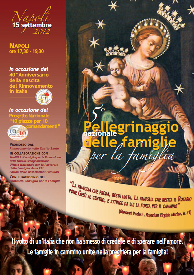 Il 5° Pellegrinaggio nazionale delle famiglie per la famiglia, organizzato dal Comitato Nazionale del Rinnovamento nello Spirito Santo e patrocinato dal Pontificio Consiglio per la Famiglia, dopo la tappa di Ancona del 2011, si svolgerà quest'anno nella città di Napoli, anziché sul tradizionale percorso Scafati-Pompei (che ha caratterizzato le prime tre edizioni), in occasione dell'evento Dieci Piazze per Dieci Comandamenti, organizzato dal Rinnovamento nello Spirito Santo nel 40° Anniversario in Italia.